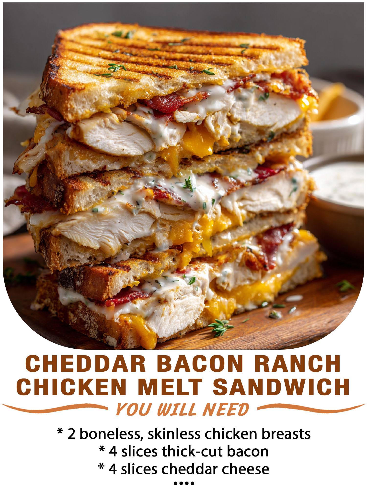 A warm, melty sandwich loaded with shredded chicken, crispy bacon, cheddar cheese, and creamy ranch dressing. Toasted until golden and bubbling, it’s rich, savory, and extremely satisfying — the kind of sandwich that disappears as soon as it’s served.