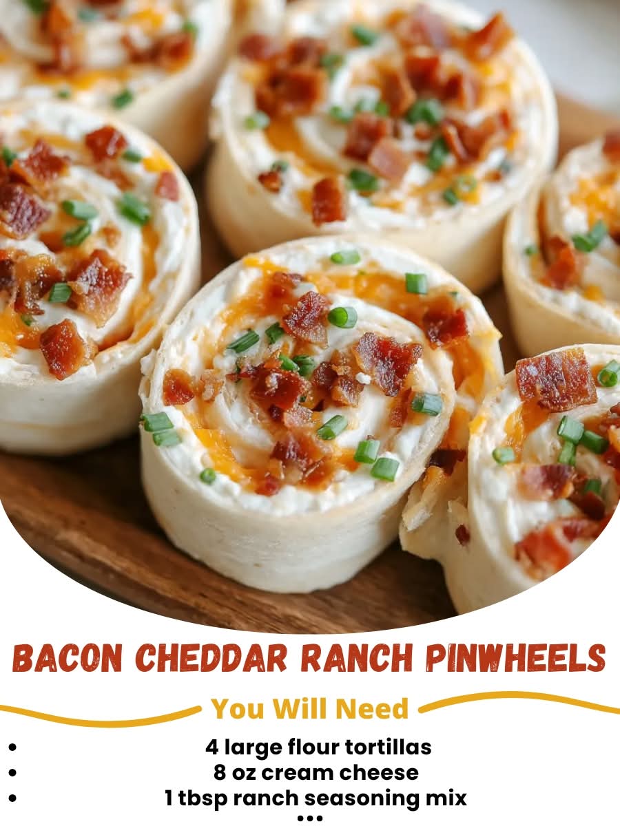 Cheddar Bacon Ranch Pinwheels are made by spreading a ranch-flavored cream cheese mixture onto soft tortillas, then layering with crispy bacon and sharp cheddar before rolling and slicing into bite-sized spirals. They’re easy to make ahead and always disappear fast at gatherings!