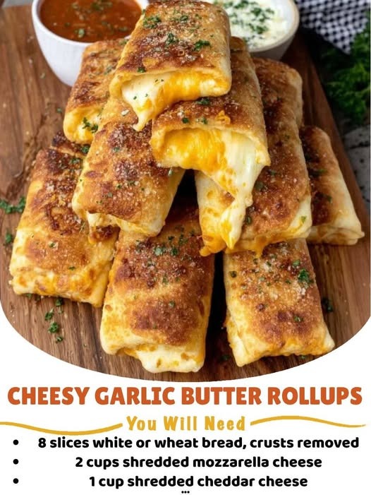 These rollups are made with tortillas or crescent dough, stuffed with melty cheese, rolled tight, and brushed with rich garlic butter before baking. They come out crispy on the outside, cheesy on the inside, and bursting with garlic-herb flavor. Perfect as a snack, appetizer, or side dish for pasta and soups!