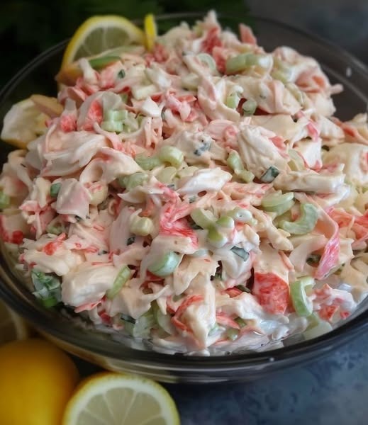 This chilled salad is a seafood lover’s dream—featuring tender shrimp, imitation crab (or real crab if you prefer), crisp celery, and a creamy, tangy dressing. Perfect for picnics, potlucks, or a simple make-ahead lunch, it’s refreshing and protein-packed.