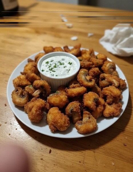 Crispy fried mushrooms are a delicious snack or appetizer made by coating fresh mushrooms in a seasoned batter and frying until golden and crunchy. The result is a perfect balance between crisp coating and juicy, flavorful mushrooms inside — great for dipping in ranch, garlic mayo, or spicy sauce.