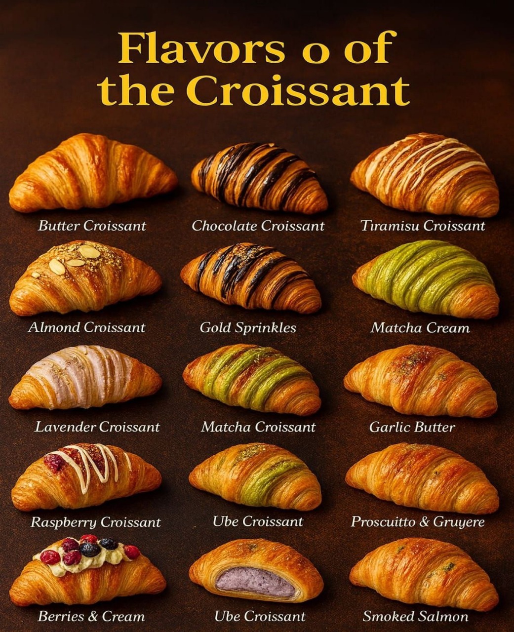Tiramisu Croissant – Filled with coffee mascarpone cream, dusted with cocoa — dessert meets breakfast.