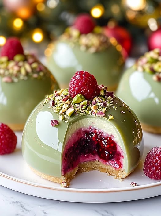 Luxurious Pistachio-Raspberry Cheesecake Domes