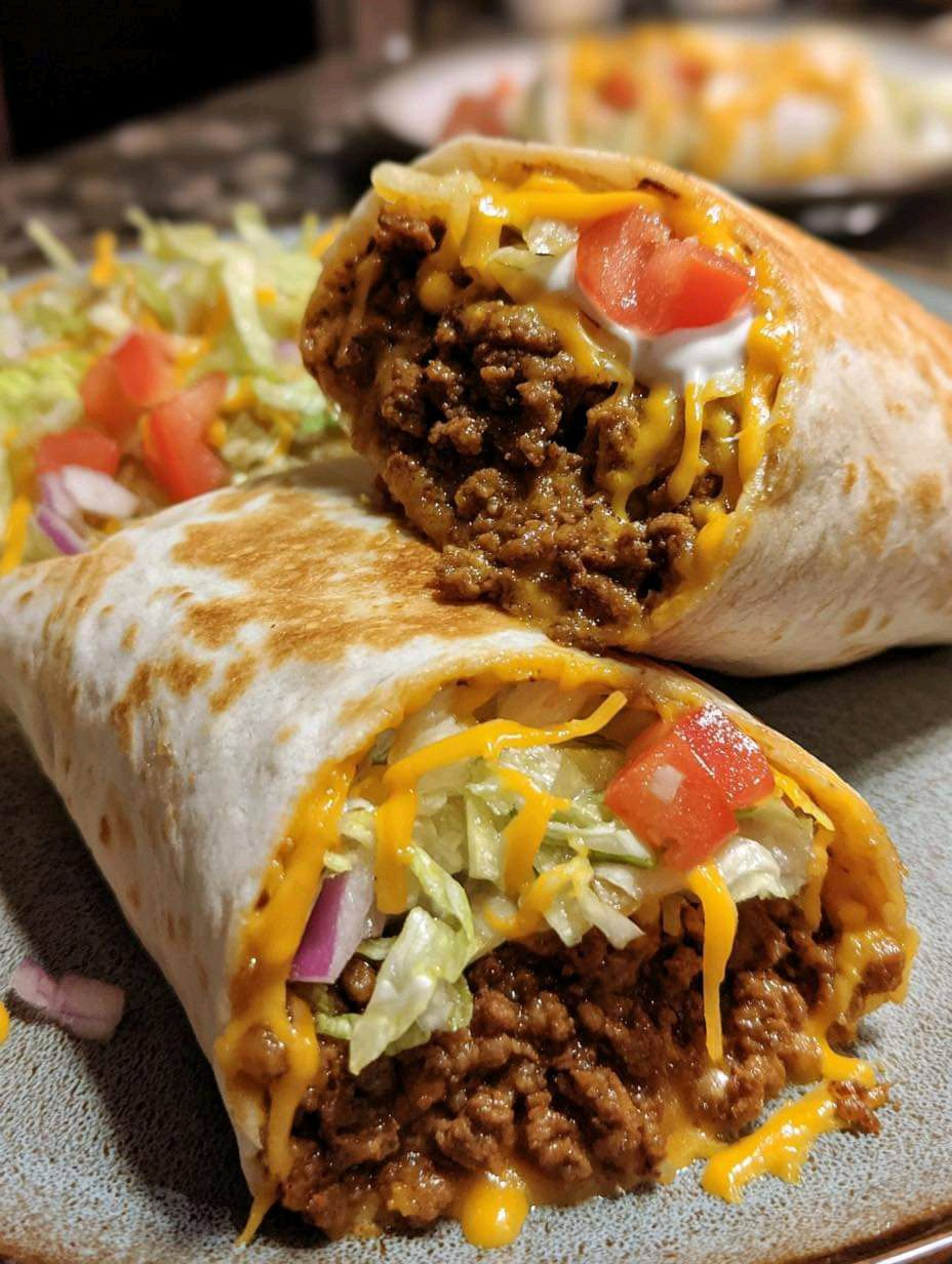 A warm tortilla stuffed with seasoned ground beef, gooey nacho cheese, crunchy chips, and fresh toppings. It’s like eating a loaded plate of nachos… but wrapped into a handheld, melty, crispy bundle. Perfect for lunch, dinner, or meal prep because it reheats beautifully.