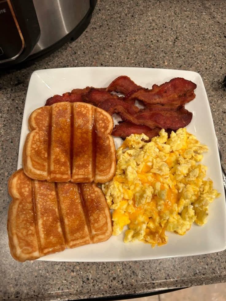 Pancake Bread with Cheesy Scrambled Eggs and Crispy Bacon