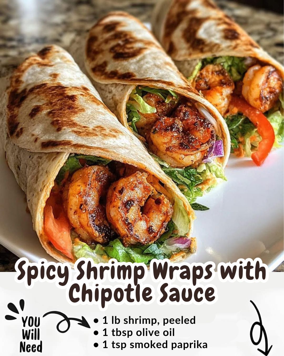 These wraps are packed with seasoned sautéed shrimp, crisp veggies, and a smoky chipotle sauce that adds heat and creaminess. Fresh, spicy, and easy to make — perfect for lunch, dinner, or meal prep.